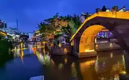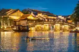 The ancient bridges, waterways, and old houses here resemble a serene ink painting. At night, the lights reflecting on the water create a breathtaking scene.
