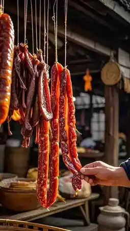 Anchang is most charming in the twelfth lunar month. Sausages, soy sauce ducks, and dried fish hang under the eaves along the street, glistening with oil in the winter sun. These preserved flavors are not performances for tourists but survival wisdom passed down through generations of Anchang people. In the workshop of the intangible cultural heritage inheritor of "Anchang Preserved Flavors," I witnessed the traditional production process: selecting local lean pork, marinating it with ancient recipe seasonings, then slowly smoking it over pinewood fire. The owner handed me a freshly sliced sausage; the amber-colored fat marbling was as beautiful as marble, and the rich aroma upon tasting evoked the festive flavors of my childhood grandmother’s home.
