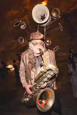 Steampunk-style mechanical devices gleam with metallic light, complementing the light and shadow installations drifting over the river. Stilt walkers hand out balloons, around the corner you encounter the fragmented light and shadow of puppet shows, and even the walls hide surprise installations. Every few steps you’re immersed in art, unable to move your feet.
