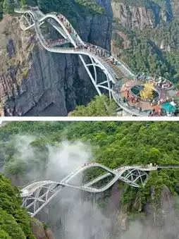 • The bridge itself resembles a fairy's cloak floating between the mountains, creating a beautiful fairytale-like experience.