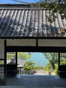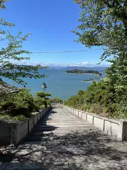 Enjoy spectacular views of the Seto Inland Sea from the elevated grounds and the stone steps.