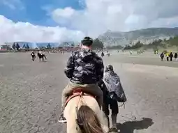 You’ll walk across a vast sandy plain, known as the "Sea of Sand," which kicks up a lot of fine volcanic dust—so I highly recommend wearing an N95 mask if you’re sensitive to it. Along the path, you’ll meet plenty of locals offering horse rides, but I found the short trek on foot to be quite manageable and rewarding. Climbing the staircase up to the crater rim is fairly easy for anyone with average to above-average fitness.🐎