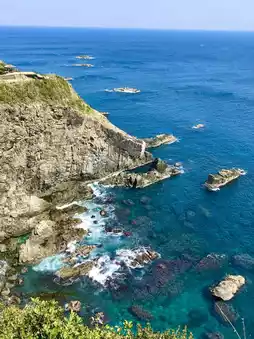 Cape Ashizuri's azure skies and crystal-clear seas seem to transport the soul into a dreamlike state. Walking along the trails of the cape, the gentle sound of waves lapping against the rocks and the whisper of the sea breeze naturally slow your pace, inviting you to savor the tranquility.