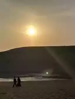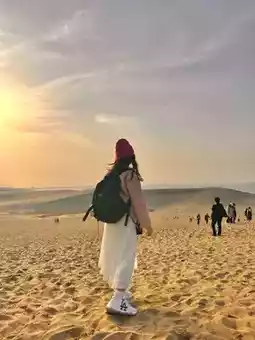 Your feet sink deep into the sand, so it's a bit difficult to get up, but the view of the ocean horizon from the top of the sand dune is also beautiful🌅