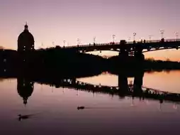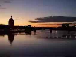 The sky changes with the time, and the European cityscape is reflected in the Garonne River.