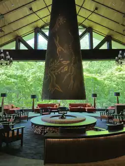 #TaroOkamoto's large fireplace Lobby Myth of the Forest