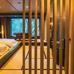 A Japanese-style room with a calming atmosphere overlooking the mountain stream