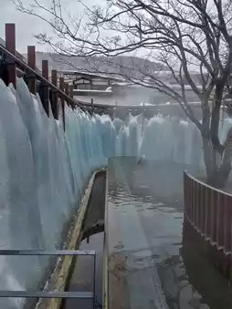 4th photo: Until March 24th, the open-air bath in the large communal bath will be transformed into "Hyobaku no Yu" (Ice Waterfall Bath)! As the name suggests, it is an open-air bath where an ice waterfall is reproduced right in front of you.