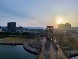 Take the tram through Toyama Station and head north to reach the famous Fugan Canal Kansui Park. This park was transformed from a part of the original Fugan Canal. The whole park is very spacious and is perfect for walking and relaxing. It is also a venue for many sports enthusiasts. There are many people running in the park, and it is also a place for nearby residents to walk their dogs. You can meet all kinds of cute dogs along the way. There is also a stone bridge with two bridge towers in the park. Climbing to the top, you can enjoy the city scenery and overlook the distant mountains and the overall landscape of the park.