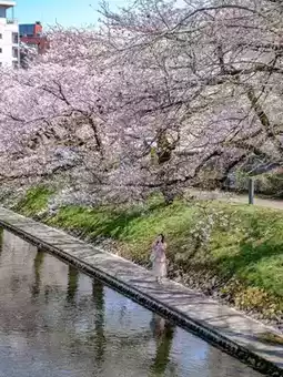 The highlight is the cherry blossom season, when both sides of the canal are lined with cherry blossoms for several kilometers. It's worth taking a walk along the canal to enjoy the view.