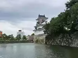 I walked along the moat. The sun shone on the water and stone walls, and the shadows of the trees swayed. It was beautiful in all four seasons. In spring, you can enjoy cherry blossoms, in summer, green shade, in autumn, and in winter, you can see the snow-capped Tateyama from afar. The rebuilt castle tower in the center is small, but it adds a historical atmosphere to the entire park.