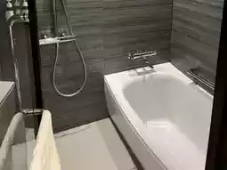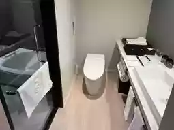 The rooms feature a cool-toned design and are quite spacious. The twin rooms come with two medium-sized beds that are very comfortable, along with a large sofa for seating. The bathroom is notably large and not the typical prefabricated unit often seen in Japan, which is a big plus. This hotel is highly recommended for travelers exploring the Hokuriku region 👍.