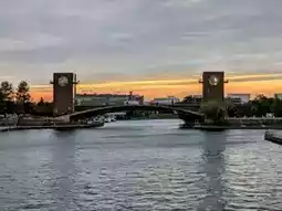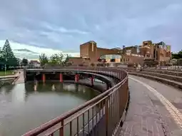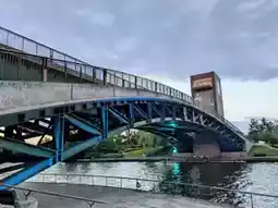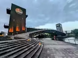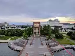 The park's iconic landmark is the Tenmon Bridge, which spans the canal and is flanked by brick-built observation towers on both ends. Visitors can enjoy panoramic views of the park and the majestic Tateyama Mountain Range from here. On the riverbank to the left, you'll find what is often referred to as Japan's most beautiful Starbucks.