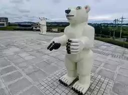 The outdoor square on the second floor of the art museum has three large, medium and small white bear works created by the sculptor Atsuhiko Misawa. Take a photo with the white bears with Tateyama as the background, which is very cool!