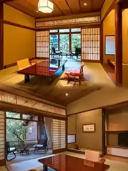 As soon as I arrived at the hotel, I was greeted by an ancient Japanese wooden building that blended harmoniously with the surrounding mountains and rivers. As I stepped into the courtyard, I was immediately captivated by the exquisite Japanese garden. The path was lined with lush greenery, the pond was filled with koi fish swimming freely, and the unique stone lanterns were scattered throughout, exuding a sense of tranquility and beauty. Walking through the garden, I felt instantly relaxed.