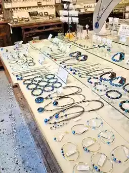 Other shops include "Tobu-o-do", a specialty store for natural stones. Kinosaki's original "deep sea blue" glass beads accessories are cute and make a great souvenir for yourself❣️