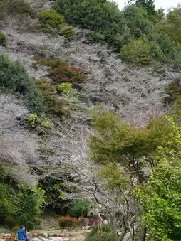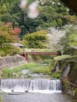 A famous spot for Shikizakura, which bloom twice a year, where you can see the combination of autumn leaves and cherry blossoms.