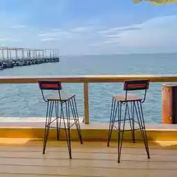Charome - Charoem accommodation, cafe, Trat province, cafe ⛱️There are tickets for sale at 70 baht, but you can exchange them for food and drinks in full. The cafe inside is located in the middle of the sea. The minimalist color tones are easy on the eyes. The tables are arranged to give a chill-out atmosphere by the sea. The 𝙈𝙤𝙤𝙙 is super good. Plus, the photos come out beautifully. The feeling of eating the breeze and watching the sea is super chill.