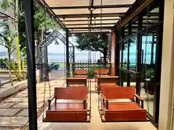 ☕️The cafe is decorated in a comfortable atmosphere, brown tones mixed with red bricks, controlling the tone. The front is glass with a view of the reservoir. The shop is spacious. Come sit and eat a relaxing meal or sit and work. There are both air-conditioned areas and outdoor seating.