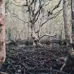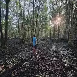 This is a white Tabun tree, which is the only place where many trees grow together. The highlight is the cross-woven pattern of the tree roots, strong and beautiful. You can walk in to see the tree roots up close.