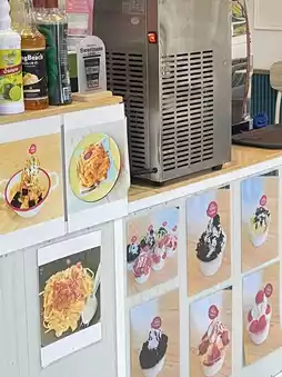 Another new restaurant in Trat province has opened! The restaurant's name is Klom Klom. This restaurant offers both savory and sweet dishes, including simple one-dish meals served with rice, salads, and spaghetti. They have everything, including desserts and drinks. My favorite is the bingsu, which is incredibly fragrant and sweet. They offer bingsu from small to large sizes. They also serve drinks. And, most importantly, this restaurant is open 24 hours, so you can stop by whenever you feel hungry to refuel. This restaurant is located in Mueang Trat District.