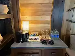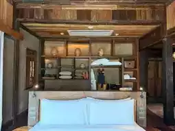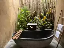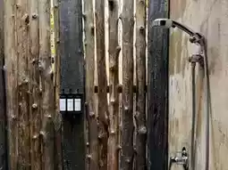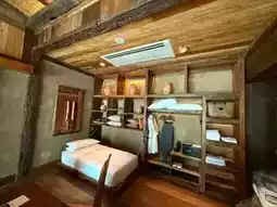 The decor is unique, and the bathroom is a bit on the sweet side. Be careful with the bathroom door, as it's hard to open and rusty. It's a typical decor style. The toilet is natural, so you might get splashed by the rain. The bathtub and shower are actually outdoors. On the day we stayed, it rained, so we showered in the rain. The water heated up very slowly.