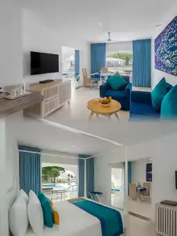As soon as I entered the room, I felt the cool breeze from the air conditioner, which was neither too strong nor too weak. The floor-to-ceiling windows offered a beautiful view of the sea, and the morning sunlight streamed through the curtains, filling the room with a sense of peace.