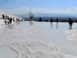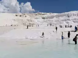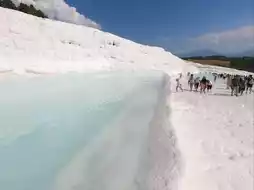 Visitors can explore well-preserved ruins including a theater, temples, and necropolis, providing insight into the region’s past. The combination of thermal springs, dramatic cliffs, and archaeological treasures makes Pamukkale ideal for both relaxation and exploration. Photography opportunities abound, with the contrasting white terraces against the blue sky creating a stunning visual spectacle. Whether soaking in thermal waters, wandering ancient ruins, or admiring the unique landscape, Pamukkale offers an unforgettable experience in Denizli.