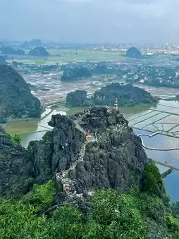 🗓️ Itinerary: Depart from your hotel in Hanoi Old Quarter ➡️ Visit the ancient capital of Hoa Lu, explore the Hoa Minh Temple, and witness the glorious history of Vietnam ➡️ Cruise through the limestone karsts of Trang An on a bamboo raft ➡️ Hike to the top of Mua Cave Mountain for a panoramic view of Ninh Binh town, a truly relaxing experience 📷