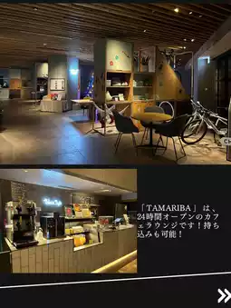 The hotel is full of playfulness, with cycle rooms where you can stay with your bike and bicycle-themed interiors scattered throughout. Another attraction is the coziness of the hotel, where you can relax with friends or couples depending on your travel style. At TAMARIBA in the lobby, you can relax with a cup of coffee or alcohol.