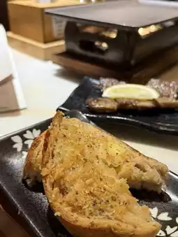 Thick-cut salt-grilled beef tongue toga and medium-cut salt-grilled beef tongue core are both delicious😋 The beef tongue is grilled just right, the thick-cut toro tongue has an oily flavor, while the medium-cut beef tongue core is more refreshing. Served with a little lemon juice for a richer layer of flavor.
