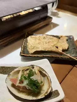 Seafood ordered garlic grilled oysters🦪 The oysters were grilled to just cooked, retaining the fresh and juicy taste, the garlic seasoning makes the oyster flavor more prominent. Hama-grilled Japanese live northern scallops