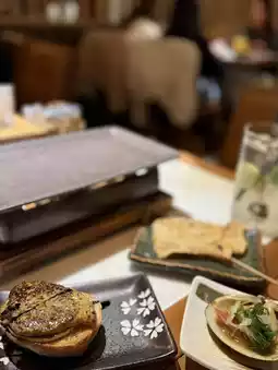 Caramel Green Apple Foie Gras Toast, the sweet and sour green apple meets the rich and smooth goose liver, great! The mint grilled rice balls are crispy on the outside and soft on the inside. Salt-grilled mustard and salt-grilled red yam are both healthy choices for vegetables.