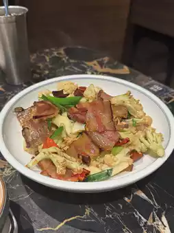Spicy, Sichuan pork is salty and fragrant, the more you bite, the more fragrant it becomes. Served with cauliflower, it's crispy enough.