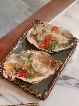 Garlic Grilled Oysters🦪 A la carte $48💰Oysters are plump and fresh😗 with garlic🧄 and chili🌶️, super flavorful