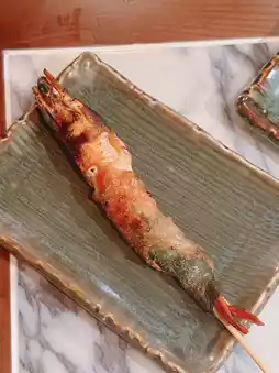 Shiso Chicken Skin Shrimp🦐 A la carte $48💰Crispy chicken skin🐔 wrapped with shiso🌱 around firm and bouncy large shrimp🍤, delicious🤤