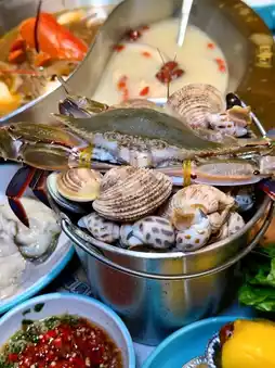 This "Thousand Sea Products" is seriously the best in the world!! ️ Refreshed my perception of Hong Kong hot pot all-you-can-eat😂 The biggest selling point is the self-service seafood area, bacon, shrimp, crab, shellfish, all fresh and lively🦀 There is also a dedicated person to help you clean 💦 non-stop replenishment, unlimited quantity of any cooking 🍲😍