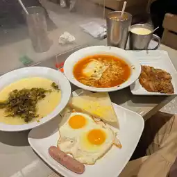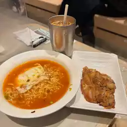 Chicken steak omelet spicy noodles The chicken steak is delicious but not tough 😋