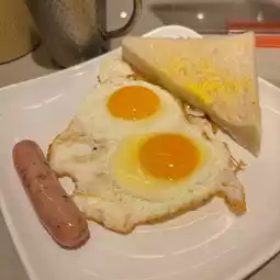 The fried double eggs are beautifully fried, the melted egg yolk is very good, and the sausage is delicious