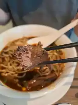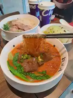 The broth is rich with beef flavor. The beef tendon is tender, thick, and smooth, well braised to absorb the flavors. The taste is rich, tender without greasiness, and the noodles are silky.