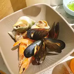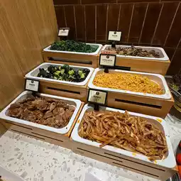 During dinner hours, the buffet bar also includes chilled seafood like shrimp, whelks, and mussels