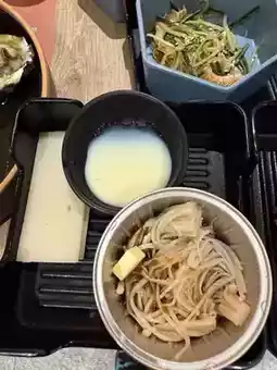 Includes sakura shrimp, scallions, seaweed, or special braised sauce for mixing. The amount of ingredients can be adjusted to personal taste, allowing everyone to create a unique mixed rice. My little brother couldn’t stop eating.