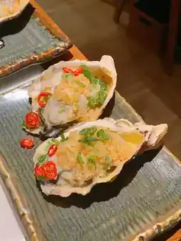 Grilled Hiroshima oysters with garlic🦪 $48 a la carte💰 Fresh and juicy oysters😋