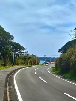 The road from Hitakatsu to Miuda Beach was quiet and peaceful. As I drove along the lush forest road, the blue sea began to appear, and I was able to leisurely drive while feeling the fresh sea breeze.