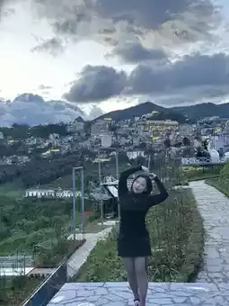 I visited Moana Sapa in the late afternoon, arriving around 4PM and staying until 6PM, and it was the perfect timing. The space itself isn’t huge, but it’s filled with beautiful, photo-worthy corners, and the real magic begins when the sun starts to set. The view during sunset is breathtaking — you can see the golden sky fading behind the mountains, and as evening approaches, all the little houses on the hills start lighting up, creating a dreamy, almost fairytale-like backdrop.