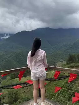 "Café on the Clouds" offers stunning views of the sea of mist and mountains of Hoang Lien Son. You can also see the monorail passing through the valley.