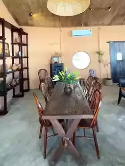 The atmosphere here is peaceful and perfect for relaxing in the evening. The name translates to "Sunset Tram," which perfectly reflects the romantic and warm atmosphere of this cafe. The interior is decorated in a vintage and loft style, with warm tones of brown, gold, and gray, creating a soft, time-traveling feel. Soft soul and jazz music plays, making sipping coffee a truly special experience. In addition to the indoor seating, there's also a popular terrace area where you can enjoy the sunset, especially in the evenings when the soft light hits the shop's glass windows, creating impressive reflections.