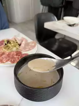 First chose the appetizer set, the ham platter was beautifully presented, with ham, Parma ham, spicy sausage and salad vegetables. You can also choose mushroom soup, quite rich.