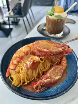 If you want to eat the red shrimp, you can add $220. Spanish red shrimp was used and served with red shrimp paste sauce. The spaghetti is also very refreshing and delicious😋