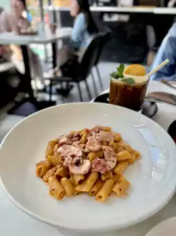 For the main course, I chose the short macaroni. The sauce is the whole point, seasoned with spicy olives and sour beans, spicy and sour, with octopus, rich layers of taste. The heat of the octopus is just right, refreshing enough without being too tough. The pasta is handmade, the texture is bouncy, quite good quality.